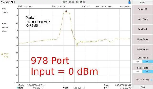 • 978 MHz insertion loss (above 3 dB): 2.73 dB
