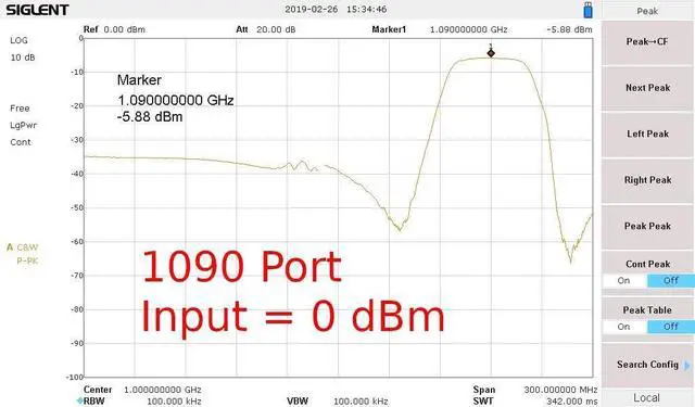 • 1090 MHz insertion loss (above 3 dB): 2.88 dB