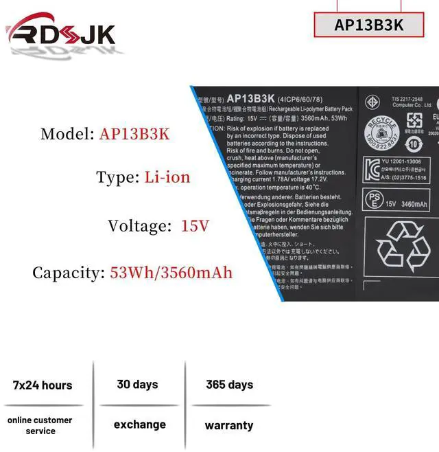 00403.01 ^^ Compatible Models: For Acer Aspire R7-571 R7-571G R7-572 R7-572G Series, For Acer Aspire R7-571-6411 R7-571-6455 R7-571-6858 R7-571-6895 R7-571G-53338G1Tass R7-571-53334G75ass R7-571-53336G50ass R7-571G-53338G75ass R7-572-5893 R7-572-6411 R7-572-6423 R7-572-6448 R7-572-6637 R7-572-6805, For Acer Aspire M5-583 M5-583P M5-583P-5859 M5-583P-6423 M5-583P-6428 M5-583P-6637 M5-583P-9688 Series, For Acer ZQK ZQY ZQI ZRl ZRQ Series, For V5-472-2625 V5-473G-54204G50AII V5-473G-54204G50APP V5-473G-6814 ^^ 100% New from Manufacturer. Up to 500 recharge cycles over the life of the battery. The actual operation time will depend on how much electricity is required by the device and how you use it ^^ For first use, please discharge the battery to 5%(not to 0%) and then charge to 95%, and cycle 3-4 times