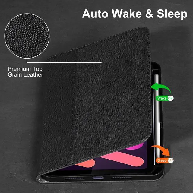 Gexmil Leather Case for iPad mini 7 (A17 Pro) 2024 / iPad mini 6 Generation 2021 8.3 Inch,Premium Cowhide Cover with Pencil Holder,Adjustable Stand, Auto Wake/Sleep,Palm-Print Black
