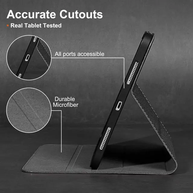 • [MATERIAL&CRAFT] - Exterior is genuine leather protecting camera and tablet body with inner super-fibre lining protecting screen and TPU full package soft inner shell. Full access to all features (Cameras, Speaker, Ports and Buttons); each cutout is tested with relevant tablet before package to make sure working perfectly