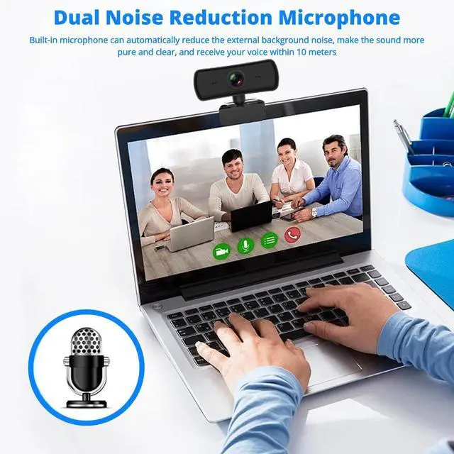 DUAL NOISE REDUCTION MICROPHONES: With built-in dual noise cancelling microphones, the computer camera can automatically reduce the external background noise, making the sound more pure and clear, and receive your voice within 10 meters.