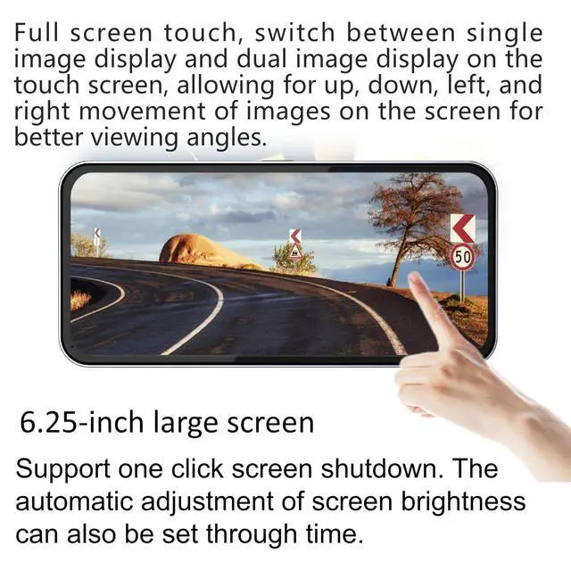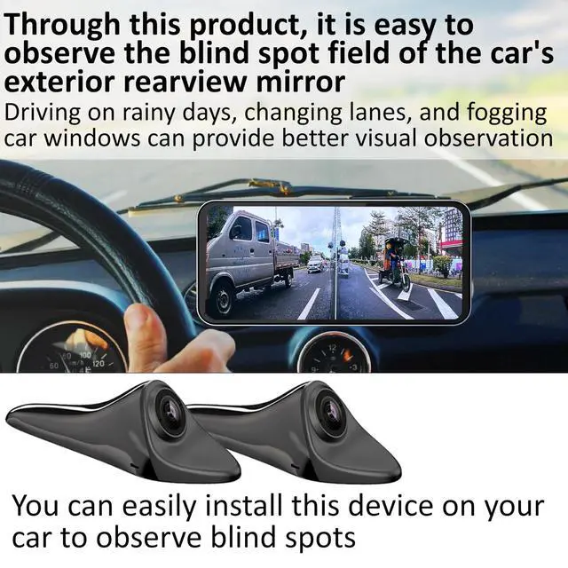 The car blind spot display system with a car blind spot camera, with a 120 side view angle of the camera, increases driving safety. The display screen can automatically adjust the brightness according to the clock, and the image can be set to move up, down, left, and right to achieve a better viewing angle. ^^ 6.25 -inch high-definition IPS full view display screen. The left and right images are displayed simultaneously on a display screen, allowing for switching between single view angles, providing clear images of the blind spot area on the left/right side of the car, covering a wide range of blind spots, ensuring safe driving.