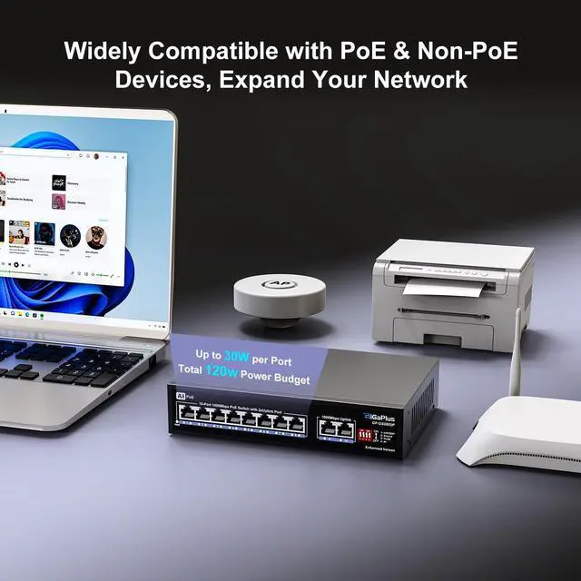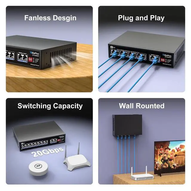 ^^ AI Watchdog Mode: This upgraded 10-port 1000Mbps Ethernet PoE switch has AI watchdog mode. This advanced feature automatically detects and resolves port issues and ensures uninterrupted power to all connected devices. Improve network security and reliability with seamless operations.