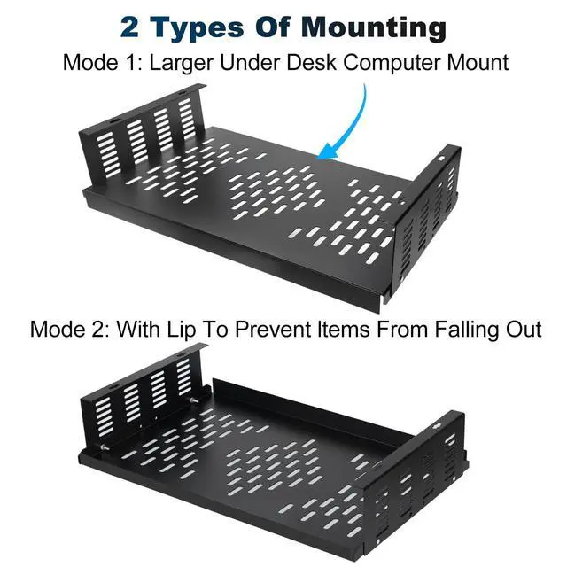 ^^ Quick Setup: The under desk mount is easy to assemble, includes all necessary hardware, and can be installed in less than 10 minutes. Installs quickly and easily under most desks or workstations. ^^ Vented Slots Vented Slots Allow Air Circulation.