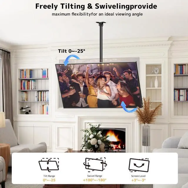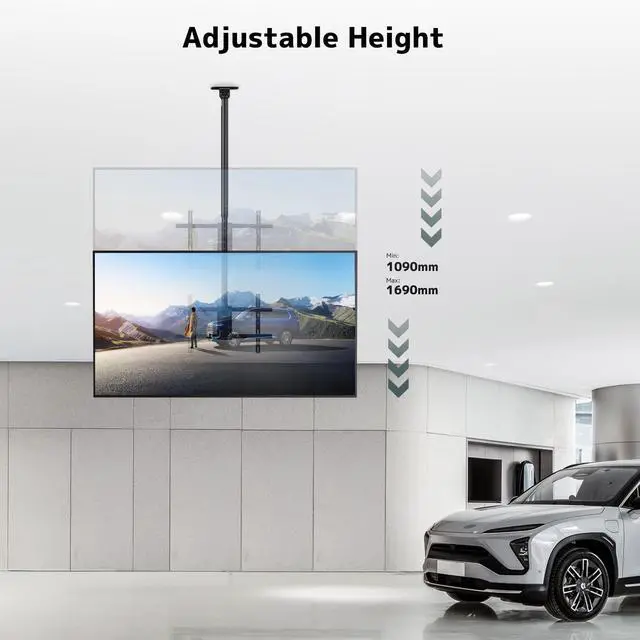 Wide Compatibility: This heavy-duty ceiling TV mount fits most 43-86 inch LCD, LED, and OLED TVs (up to 132lbs).