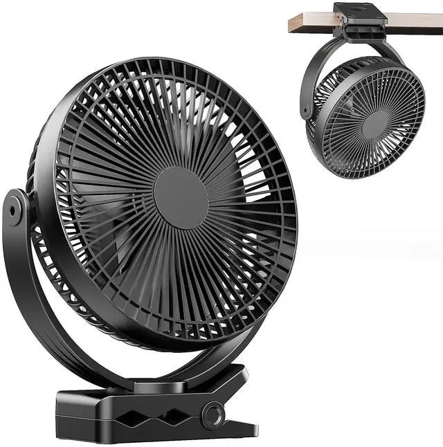 4 Speeds AdjustableThe USB charging fan has 4 adjustable speeds. The advanced brushless motor is equipped with three large torque 8-inch fan blades that can provide powerful wind under ultra-quiet conditions to meet different cooling needs and allow you to quickly cool down. ^^ 2 in 1 FanThe USB clip fan can be used as a portable desk fan and also has a strong base clamp. The multi-function clamp can be opened to 3 inches, which can be fixed on the edge of the treadmill or bedside during exercise or sleeping, saving space. ^^ Dual 360 Rotation The Electric Fan Supports Dual 360 Rotation vertical and horizontal Adjustment, Not only the fan head can be rotated 360 vertically, but the base can also be rotated 360 horizontally.