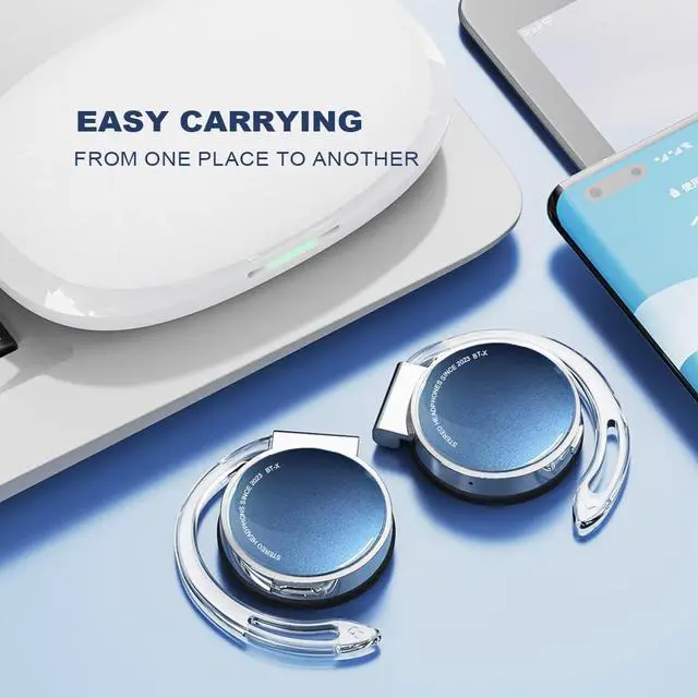 When the charging case is fully charged, the bluetooth headsets with earhooks can be charged 3 times, and the total listening time of music can be up to 42 hours. ^^ Fast Contact and Wide Applications The BT-X new wireless open ear headphones adopt Bluetooth 5.3 technology, which is fast in pairing, more stable in connection, and more reliable in use. In addition to being used for sports and running, the earlobe type Bluetooth earphones are also widely used by students when practicing listening with 28MM dynamic speakers. ^^ With Charging CaseThe large-capacity charging case allows you to charge the wireless on-ear headphones in time when the headset is out of power, so you don't have to worry about charging.