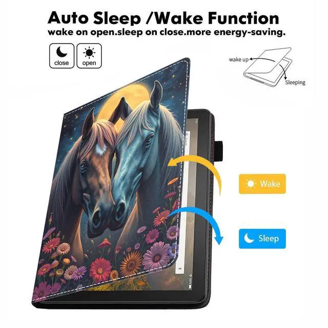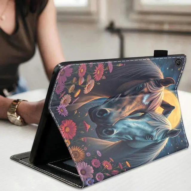 [ Compatibility ] - Specifically designed for All-New kindle Fire 7 Tablet (7 inch Display, 9th/7th Generation, 2019/2017 Release), Not Compatible with Kindle Fire 7 Tablet (12th Generation, 2022 Release), Please Check Your Device Model Before Purchase. ^^ [ Premium Materials ] - Fire 7 (2019) Tablet case ultra slim and lightweight design with fashion pattern. PU leather soft-touch front exterior with soft TPU back, protect the tablet from dirt, scratch, shocks and bumps. Shockproof and impact resistant. ^^ [ Hands-Free Stand Design ] - Folding folio design for the fire 7 (2019) tablet case support multi-angle horizontal stand, Comfortable watching movie or typing.
