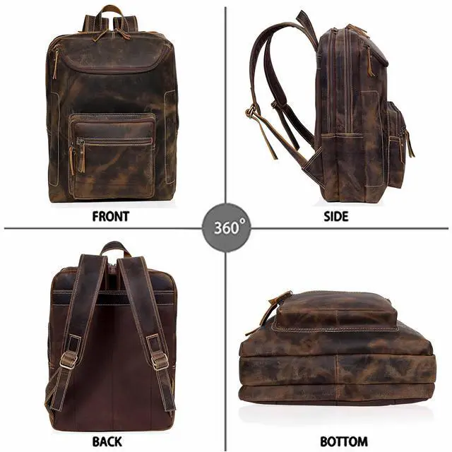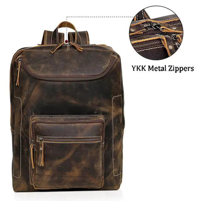 High Quality: The travel backpack is made of full grain cowhide leather by professional craftsmen with more than 10 years of experience. The YKK metal zippers can bear 1000 times pull strength testing and becomes smoother over time.