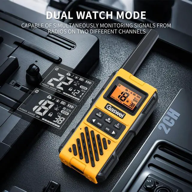 Battery life varies based on transmission power (high/low), volume level, and usage patterns. ^^ Switchable High/Low Power Our walkie talkies for adults effortlessly switch between 0.5W (Low) for energy-saving operation and 2W (High) to boost your range. Experience clear communication over extended outdoor distances and through multi-level buildings. Maximize performance by selecting higher-power channels for longer range and low-power channels for efficient close-quarters use. ^^ Multi-Functional Two-Way RadioGaswei walkie-talkies go beyond basic communicationpacked with features like VOX hands-free, SOS alerts, vibration alerts, power-saving mode, keypad lock, high/low power switching, and headphone support.