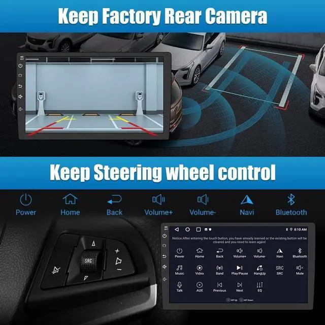 ^^ Software Update Support: Keep your Android 13 head unit current with wireless updates, allowing you to address software bugs and boost security effortlessly. A few taps are all it takes to improve your device! Please remember, these updates enhance software usability rather than upgrading the Android version. Compatible with Aftermarket Camera (HS19) and Car Powered Subwoofer (not included both). ^^ Android 13