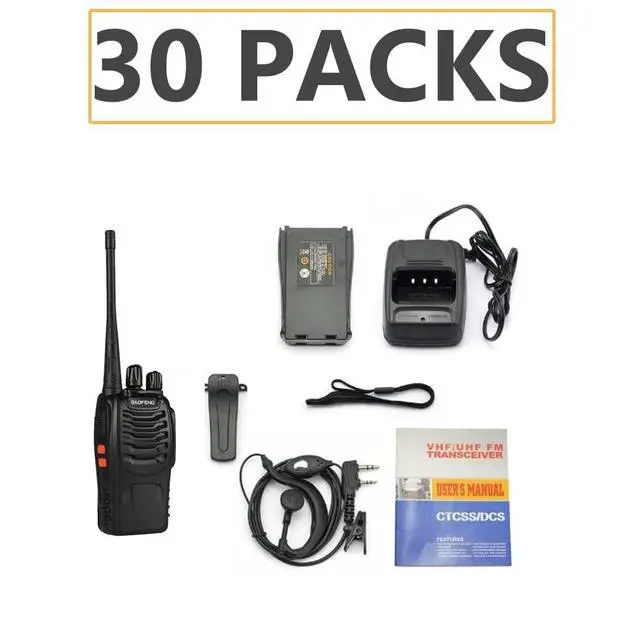 Package Includes: 30 x (radio, antennas, battery, earpieces, belt clip, wrist strap, charger, user manual)