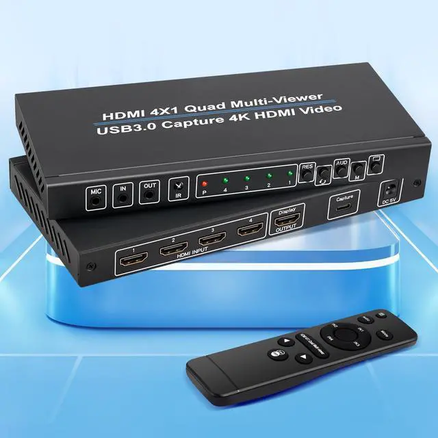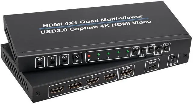 STREAMING SOLUTION: Perfect for live streaming, gaming studios, and security monitoring with seamless switching between different viewing modes ^^ What you getHDMI 4x1 Quad Multiviewer and Capture x 1, TYPE-C Capture Cable x 1, TYPE-C to USB 3.0 Adaptor x 1, DC005 Power Cabel x 1, IR Remote x 1 (The IR remote control is power up by AAA battery. Do not include with the product), User Manual x 1. If you have any questions or concerns, please feel to contact us, we will give you a satisfactory answer within 24 hours.