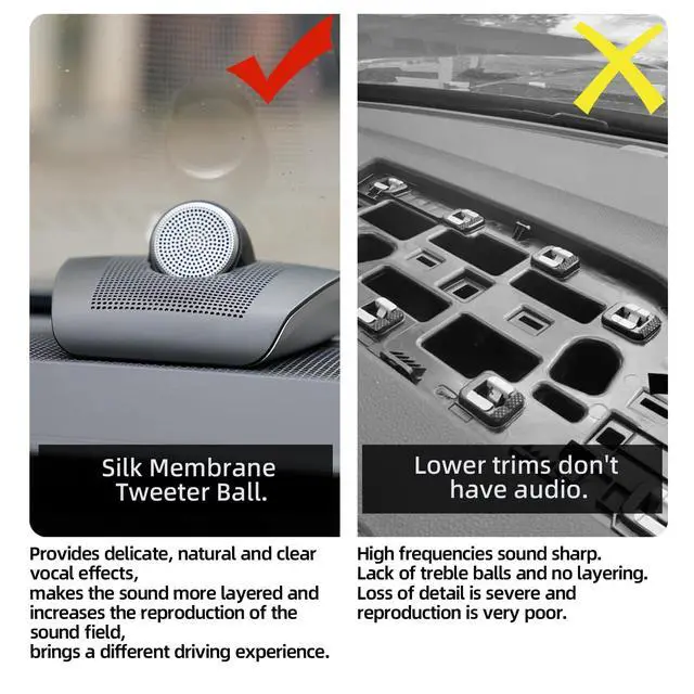 surface mount speakers: Professional car audio quality 300W peak power+4 ohms impedance, covering the full frequency range of 600-20000Hz, with clear high notes, precise mid notes, and deep bass, comparable to the sound effects of modified audio. ^^ Universal non-destructive installation Specially optimized for the original car center console position, no cutting installation, comes with a universal fixed bracket, and can be installed without the need for professional tools. ^^ Durable and safe design The shell is flame-retardant and explosion-proof, and the mesh cover is dustproof and impact resistant, ensuring worry free driving safety. ^^ Beauty and practicality coexist Ultra thin body with streamlined border, not obstructing the line of sight; Perfectly match your car interior style.