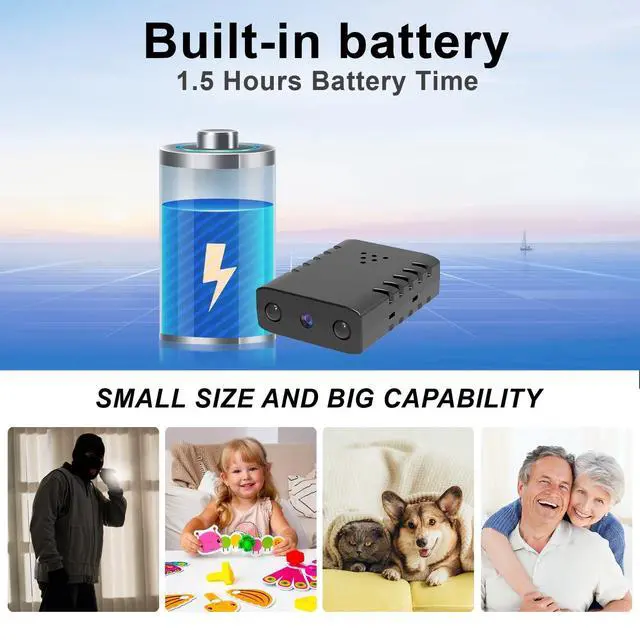 Built-in battery XDWIFI Pro wireless camera with built-in lithium battery, outdoor continuous power supply for about 1.5 hours. USB port can be connected to USB devices such as mobile power, USB plug, etc. for unlimited power supply. It is a video-only surveillance equipment that does not record sound, recorded video without audio (Via no audio policy).