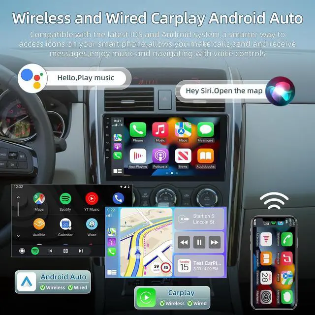Applicable ModelsThis upgraded replacement dash kit is for Mazda CX-9 CX9 CX 9 2006 2007 2008 2009 2010 2011 2012 2013 2014 2015. Audio comes with on-board host, harness cable and frame panel. Supports most stock features - steering wheel controls, stock USB features, etc. Please check the power cable port on the detail page to make sure it matches your original car before purchasing. ^^ Wireless Carplay and Android AutoAndroid car radio has built-in wireless Carplay and wired Android Auto, which supports the use of smart voice assistant or touch display to get directions, make phone calls, send and receive messages, enjoy music and more.