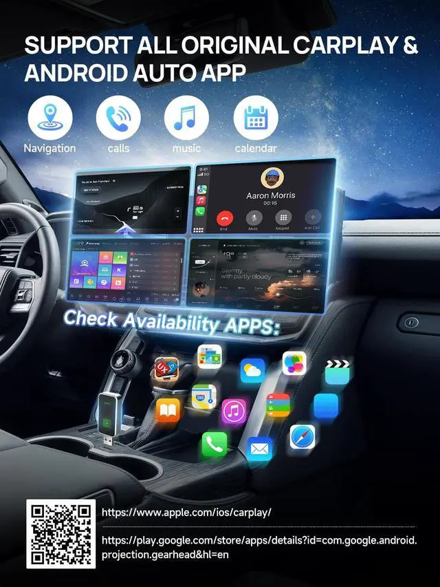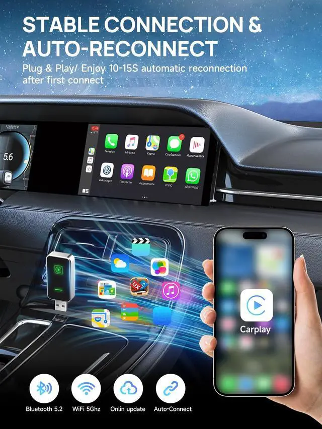 ^^ Please note: This bluetooth carplay adapter converts wired CarPlay to wireless, but it cannot add CarPlay function to your car. Please make sure your car supports wired CarPlay before purchasing. Compatible with iPhone running IOS 10 / Android 11 or above.