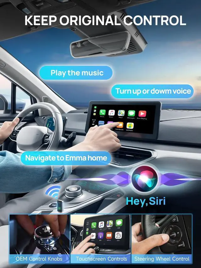 ^^ Keep orginal control: Iphone wireless carplay adapter can be seamlessly integrated with the car system, allowing you to enjoy wireless CarPlay while retaining the original car operation and control functions such as navigation, music playback, Siri assistant, phone calls, etc., without changing your operating habits. ^^ Plug and