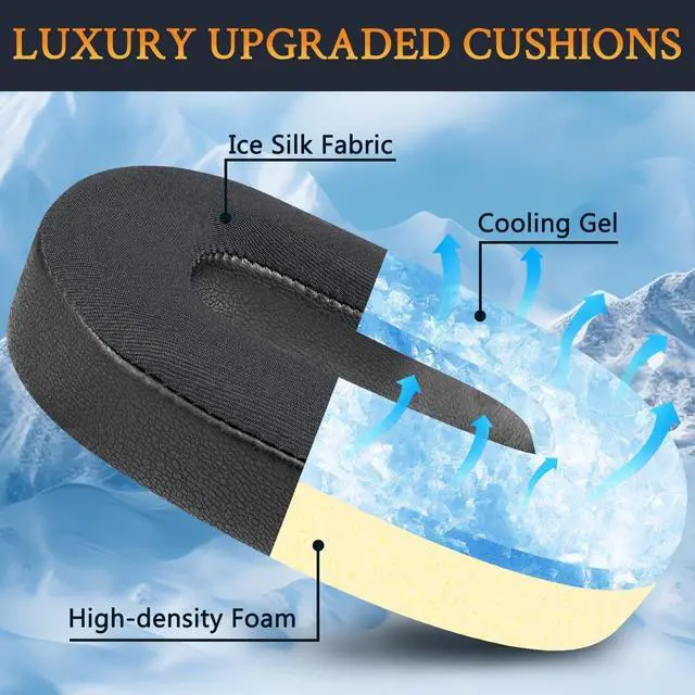 Keep Your Ears Cool: The Soft Cooling-gel is added under the top layer fabric (breathable Ice Silk fabric) of the earpads, absorbing the sweat in the summer days and keeping your ears cool after a long time of use.