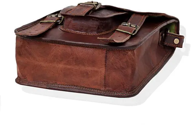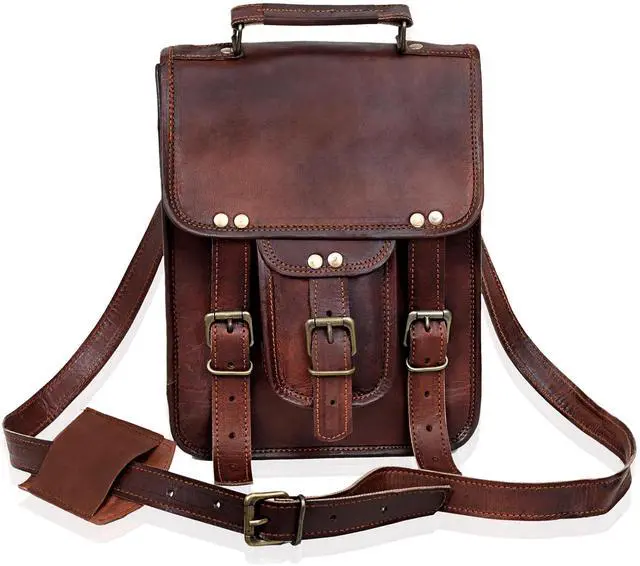 Premium Material Crafted from genuine 100% leather with a durable canvas lining for long-lasting use. ^^ Compact Size Measures 17" (W) x 12" (H) x 4" (D), ideal for everyday carry without bulk. ^^ Organized Storage Features 1 large main compartment and 1 small inner pocket to hold iPads, books, and essentials. ^^ Extra Pockets Includes a back zipper compartment and a small front pocket for quick-access items. ^^ Adjustable Comfort Comes with an adjustable shoulder strap for a customized, comfortable fit.