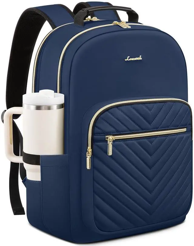 LOVEVOOK Laptop Backpack for Women with Giant Tumbler Holder 17.3 inch,Designer Travel Backpack Laptop Bag College Backpack,Quilted Work Nurse Teacher Backpack Purse Computer Bag Daypack,Navy Blue
