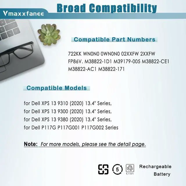 Condition: 100% brand New. ^^ Compatible laptop Modelsfor Dell XPS 13 9310 (2020) 13.4" Series, Dell XPS 13 9300 (2020) 13.4" Series, Dell XPS 13 9380 (2020) 13.4" Series, Dell P117G P117G001 P117G002 Series. ^^ Compatible P/N722KK WN0N0 0WN0N0 02XXFW 2XXFW FP86V. M38822-1D1 M39179-005 M38822-CE1 M38822-AC1 M38822-171. ^^ Quality &