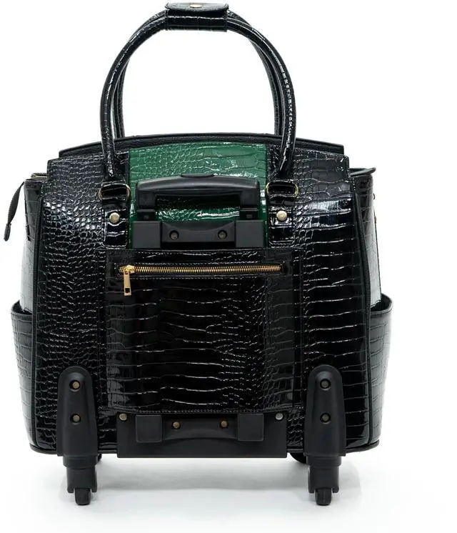 • Striking Emerald Green and Black Design: Make a statement with this stunning laptop rolling bag, featuring a vibrant emerald green central panel contrasted by sleek black crocodile-embossed PU leather sides. This dynamic combination exudes power, sophistication, and style.