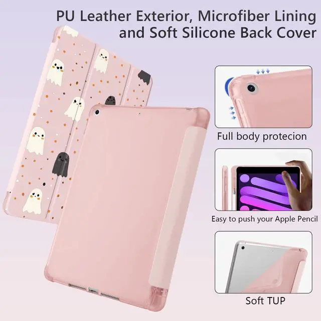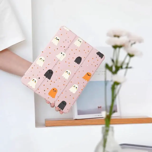BlHMCASE Kawaii Cute Halloween Ghost for iPad Air5/Air4 Case with Pencil Holder, Auto Sleep/Wake, Pink Leather Soft TPU Back Cover for iPad 10.9 Inch 2022/2020