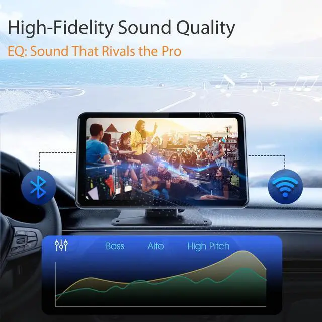 The live feed automatically displays on your car stereo when reversing, clear and real-time guidance for stress-free parking. ^^ FM Transmitter & Plug & Play Installation - Turn any car into a wireless music hub with the built-in FM transmitterbroadcast audio to your factory radio. No car dismantling or wire cutting needed! This portable carPlay screen fits all vehicles with a simple plug-and-play setup. ^^ Bluetooth 5.0 & Multi-Functional Controls - Enjoy faster pairing and stable connections with Bluetooth 5.0. Stream music, take calls, or use voice commands hands-free. The SD/TF card slots expand storage, while the FM/AM radio keeps you updated on traffic and news.