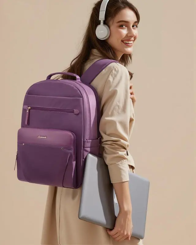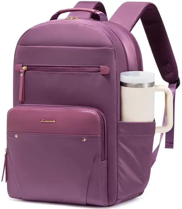 DescriptionLOVEVOOK Laptop Backpack for Women with 2X Extra-Large Tumbler Pockets, 15.6" Work Backpack Purse, Travel Personal Item Bag, Carry On Business Computer Bag for Office, School, or Gift, Lustrous Plum