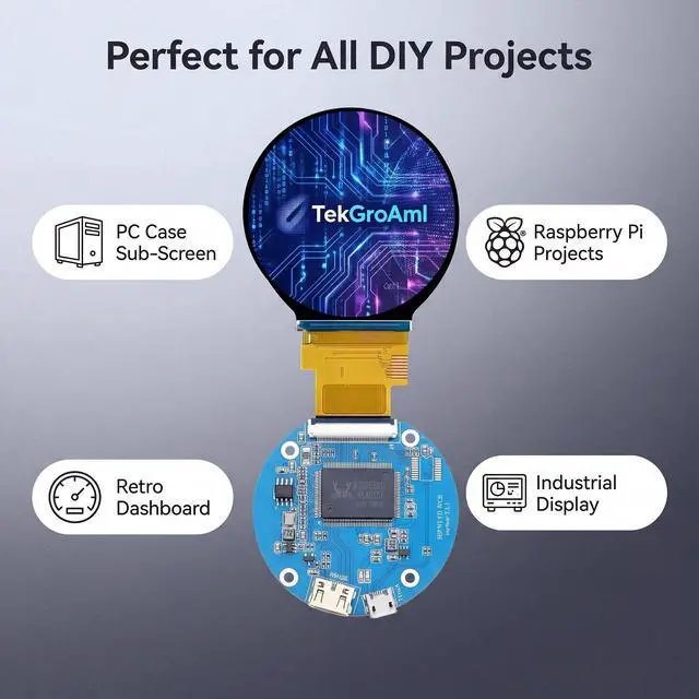 Ideal for DIY water cooling cases or as a dynamic "Sub-Screen" inside your computer chassis. ^^ [Wide Compatibility] Seamlessly works with Windows and Raspberry Pi systems. Whether you are building a custom gaming rig, a retro dashboard, or an industrial control display, this circle monitor provides a unique aesthetic that square screens can't match. ^^ [Compact & Reliable] Ultra-thin design allows for versatile mounting in tight spaces. We provide professional technical support for AI-DA64 configuration.