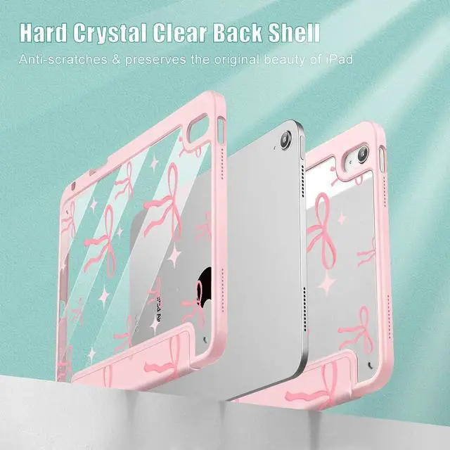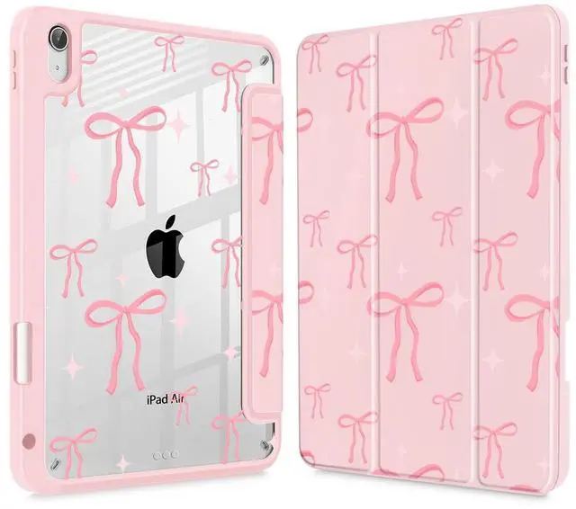 May Chen for iPad Air 11-inch M4/M3/M2 (2026/2025/2024), iPad Air 5th/4th 10.9 Inch - Shockproof Cover with Clear Back Shell & Penceil Holder Auto Wake/Sleep Stand Cover, Pink Bows P721