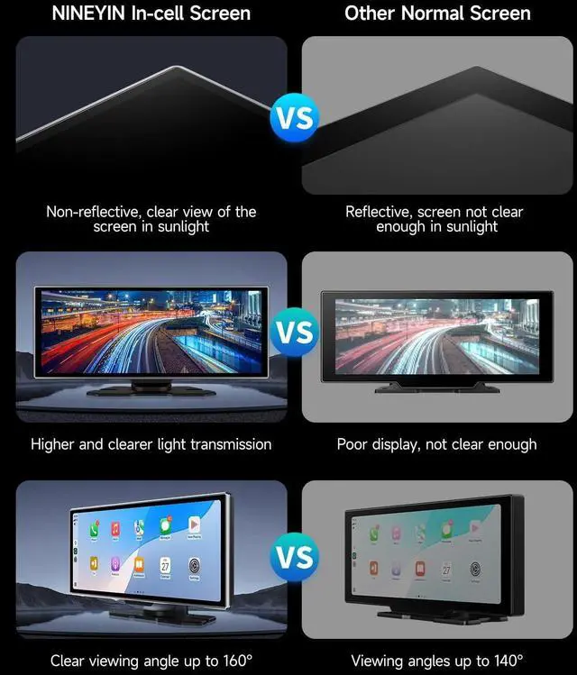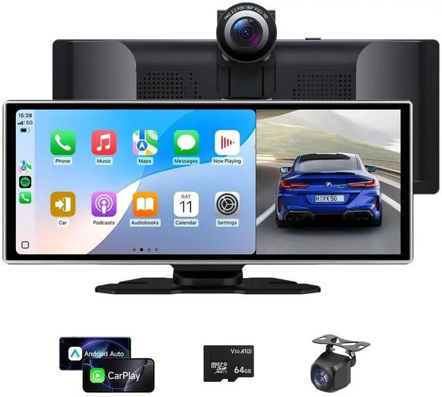 Upgraded In-cell Touchscreen & Mirror LinkThis car screen carplay features an 11.26 -inch high-definition In-cell display for enhanced visual clarity. Navigation, video playback, and other interfaces are clearer compared to traditional displays. It supports smartphone screen mirroring, allowing you to sync your phone content to a large HD screen with a resolution of 1920x720 for a comfortable viewing experience ^^ CarPlay/Android Auto/Voice AssistantThe portable carplay screen for car allows seamless wireless integration with both A-pple CarPlay and Android Auto. With Siri or Google Assistant, you can make calls, send messages, control media, and navigate effortlessly using voice commandskeeping your hands on the wheel and your focus on the road ^^ Easy InstallationThe a-pple carplay with dash cam is compatible with vehicles ranging from 7-24V and can be easily installed via the cigarette lighter power source without removing the factory stereo.