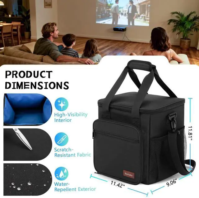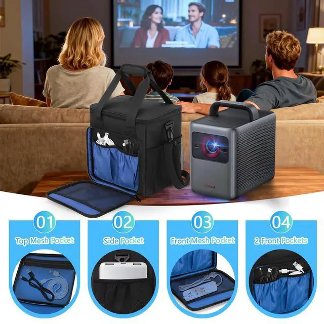 Compact Projector StorageProjector Case size is 11.42 x 9.06 x 11.81 inches, compatible with Nebula Mars 3 and Cosmos Laser 4K / 4K SE. Measure your projector and verify model/size before ordering to avoid a wrong fit. Bag onlyprojector and accessories not included. ^^ Better Protection for Your ProjectorA durable, abrasion-resistant outer fabric pairs with foam padding to help absorb bumps and reduce scuffs during storage and traveladded protection for everyday use. ^^ Pockets That Keep Gear in OrderThis Projector Case features multiple pockets to separate and organize essentials like the remote, power adapter, charging cable, HDMI cable, and small accessorieseverything stays tidy and easy to find.