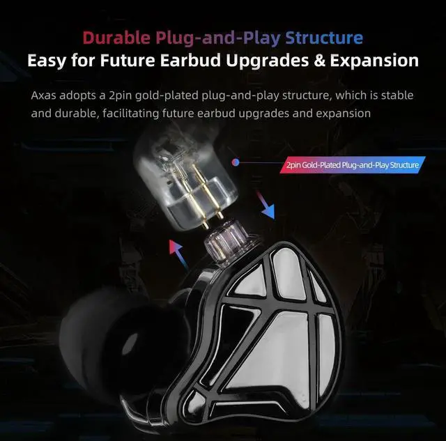 Detachable Cable: Axas gaming ear buds features a 2-pin gold-plated plug-and-play design with minimal signal loss, ensuring stable and long-lasting performance. The detachable cable allows easy connection to computers and smartphones, facilitating future earbud upgrades and expansions.