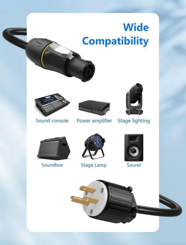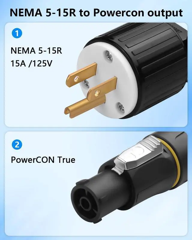 Copper: NEMA5-15P to powercon true1 cable with pure oxygen-free copper core ensures minimal heat, low resistance, and superior conductivity for 15A/125V power delivery ^^