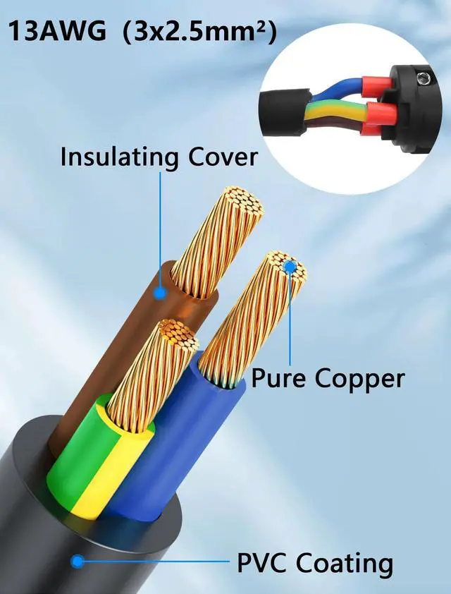 Durable Construction: 13AWG(3x 2.5 mm) oxygen-free copper wires for excellent conductivity and low resistance, ensuring stable current flow even under heavy loads ^^