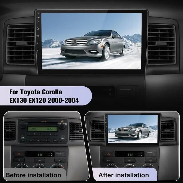 Applicable Car ModelsThis car radio supports Toyota Corolla EX130 EX120 2000-2004, It comes with a comprehensive plug-and-play kit that includes all necessary components for installation. Retains the factory steering wheel controls, and factory antenna adapter. ^^ Android 13 SystemAndroid 13 operating system, ensure smooth and fast operation. Provide you with a more comfortable experience and convenient operation. ^^ Wireless CarPlay & Android AutoA Smart Way to Use Your Phone in the Car, Simply connect your iPhone/Android device to the Android car stereo via Bluetooth. Use a smart voice assistant or touch the display, you can get directions, make calls, send and receive messages, enjoy music, etc.