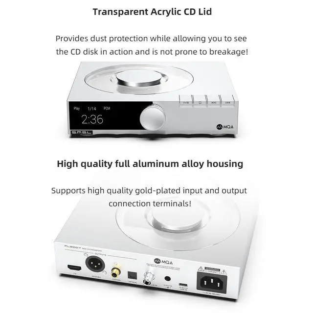 ^^ See the Magic: Transparent acrylic CD lid lets you watch discs spin while protecting against dust and damage. Real-time track info, sampling rates, and intuitive UIcontrol at a glance.