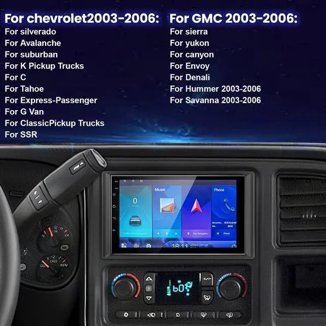Applicable Car Models For Chevrolet chevy 2003 2004 2005 2006: Sliverado, Suburban, Tahoe, Avalanche, Chevy Classic Pickup Trucks, SSR, Express-Passenger, G Van. For GMC 2003-2006: Sierra, Yukon, Canyon, Envoy, Denali. For Hummer 2003-2006. For Savanna 2003-2006. Unsure if it fits? Simply send us a photo of your car's center console, and our team will verify it for you within 24 hours!
