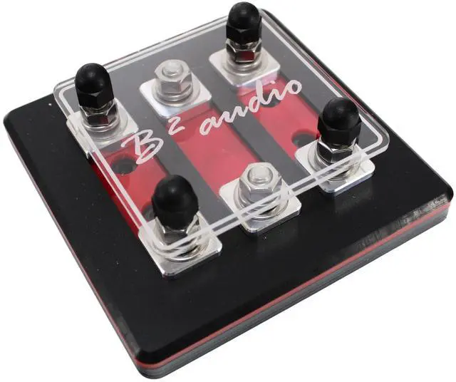 Rated for High-Output Fuses - Optimal for 500A ANL Fuses ^^ Corrosion-resistant metal terminals to ensure long-term reliability ^^ Clear acrylic cover adds safety by preventing accidental contact with live terminals ^^ Compact and sleek design ideal for professional and custom audio installations ^^ Versatile use for both power and ground distribution in automotive, marine, or powersports applications.