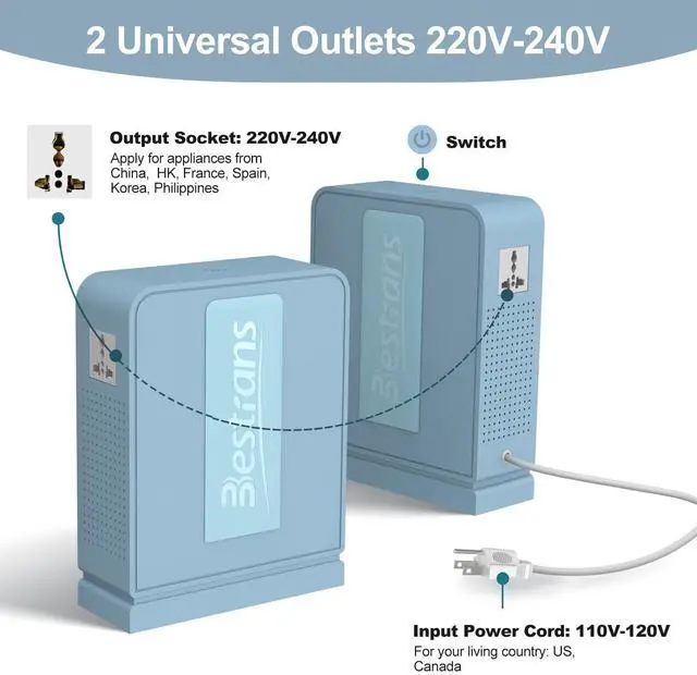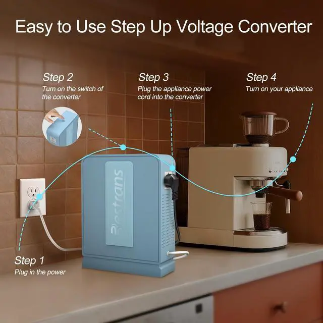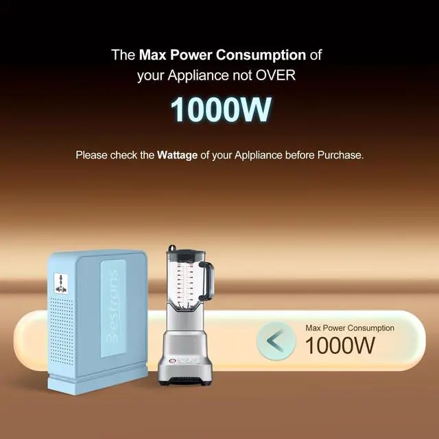 Stable Conversion: This 110v to 220v converter delivers consistent 220V power for European/Asian appliances in the US, featuring a robust 1000W capacity to handle high-wattage devices without voltage drops.