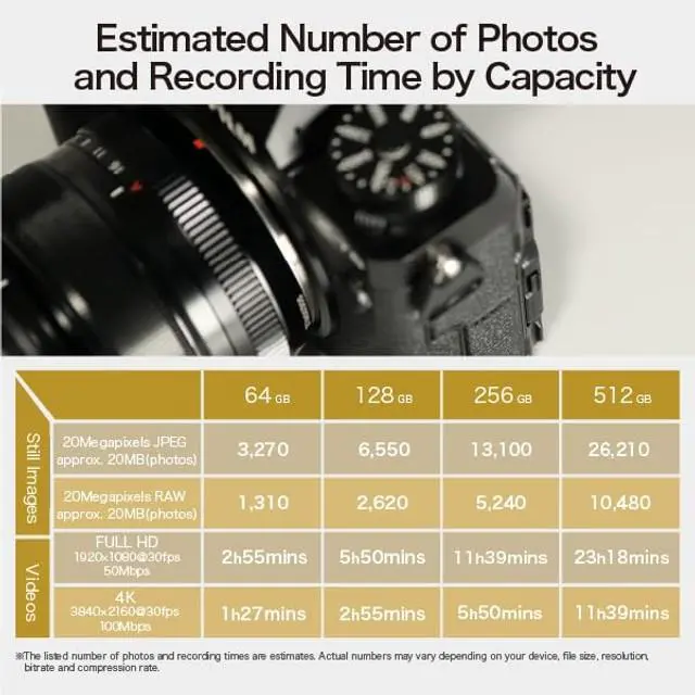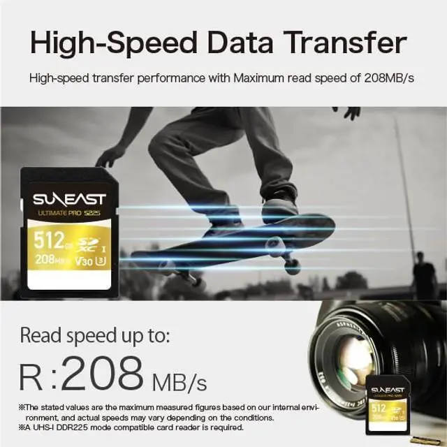 The Ultimate Pro SDXC Memory Card delivers fast read speeds up to 208MB/s and write speeds up to 170MB/s, ideal for burst photography, 4K video, and large file transfers. Supports 4K UHD recording (up to 3840 x 2160) and is compatible with UHS-I, Class 10, U3, and V30 devices. Ideal for DSLR cameras, 4K camcorders, drones, and other high-performance devices.