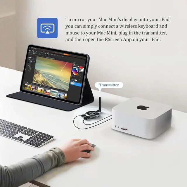 Simply stream the video from your laptop or camera to your i-Pad or Android device with ease ^^ Easy Setup with App DownloadSimply download the RScreen app on your i-OS or Android device, click the app to go to the Wifi settings, select RScreen-xxx, enter the password "12345678, " then go back to the app, wait for about 10 seconds to establish a connection, and start streaming immediately. Note that mobile devices can only function as a display and cannot perform any operations ^^ Enhanced Collaboration and EngagementStay connected and keep everyone in the loop with real-time streaming.