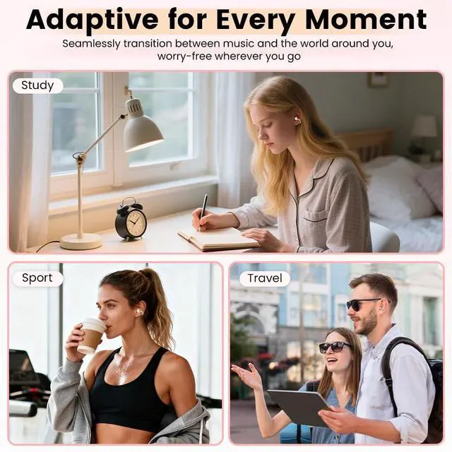 The open-ear design lets you stay aware of your surroundings, making it ideal for work, walking, or relaxing at home.