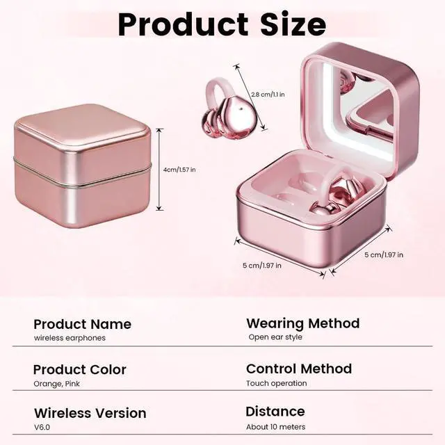 2-in-1 DesignMore than just earbuds, this set includes a sleek charging case with a built-in mirror and adjustable LED light. Perfect for quick touch-ups, makeup application, or ensuring you look flawless on video callsall while enjoying your favorite music or podcasts. ^^ Stable ConnectionEquipped with the latest Bluetooth 6.0 technology for fast pairing and stable connectivity. Enjoy crisp, balanced audio whether youre listening to music, joining virtual meetings, or watching videosfully compatible with both iPhone and Android smartphones. ^^ Marathon PlaytimeWireless bluetooth earbuds offer a long playtime, up to 40 hours total.