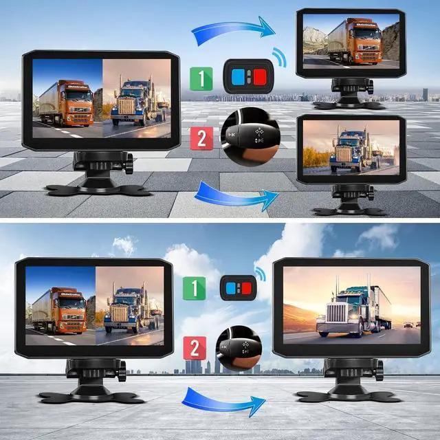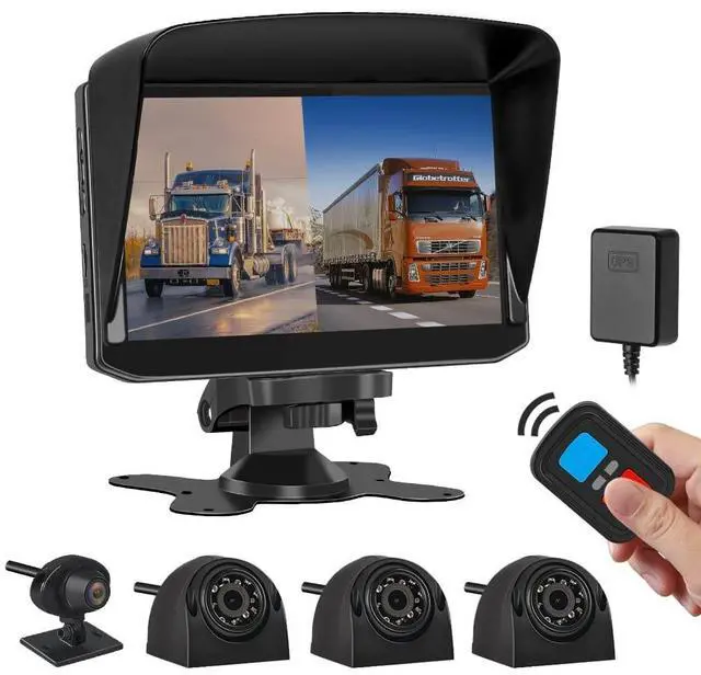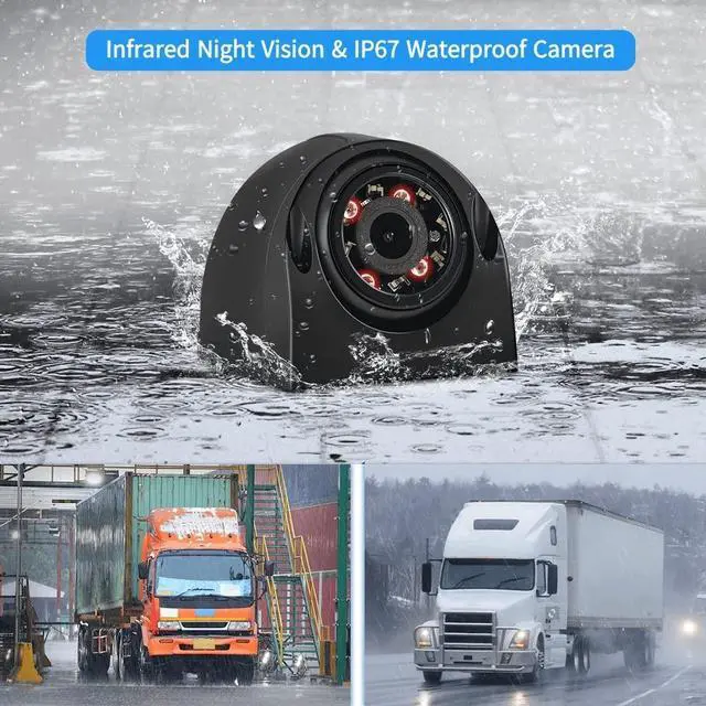 Waterproof Design: All cameras feature 1080P CMOS and an IP67 waterproof rating. The side and rearview cameras are equipped with four powerful IR LED lights for clear nighttime image capture, making them suitable for use in any condition. The 7.0 '' HD IPS screen with a sun visor provides real-time clear footage in single full view or 2-way split screen options as desired.