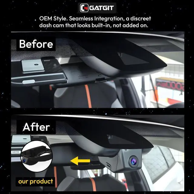 OEM-style for RAV4This GATGIT RAV4 dash cam maintains your vehicle's factory-style aesthetic, No wiring is requiredsimply plug directly into your vehicle's original connectorwith no bulky suction cups, no messy adhesives, and no tangled wires. It is tailor-made for 2022-2025 Toyota RAV4 LE Limited SE Adventure XLE XSE (with Vent Hole) models and does not obstruct your view after