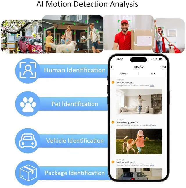 2K Live Video & Color Night VisionWhether it's day or night, you can enjoy vivid colors with 2K resolution. With a 130 wide field of view and full-color night vision, you won't miss any details even in the darkest conditions. The "Video Settings" page in the Tuya app allows you to switch between black and white infrared night vision and full-color night vision to suit different observation needs. ^^ Two-Way Audio & Smart AlertsWith our smart home security cameras, you can monitor and communicate with your home from your smartphone in real-time. It features AI motion detection for instant alerts and an integrated alarm to deter intruders, ensuring your home stays secure.